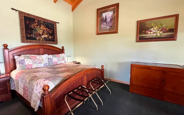The San Juan Suite offers a blend of comfort and luxury, ensuring a memorable stay. From its cozy fireplace and Jacuzzi tub to panoramic views of the San Juan Mountains, every detail is designed with your relaxation in mind. Enjoy modern amenities like air conditioning, Wi-Fi, refrigerator, Keurig coffee maker, smart TV, and access to an extensive movie library, all while soaking in the beauty of Pagosa Springs.